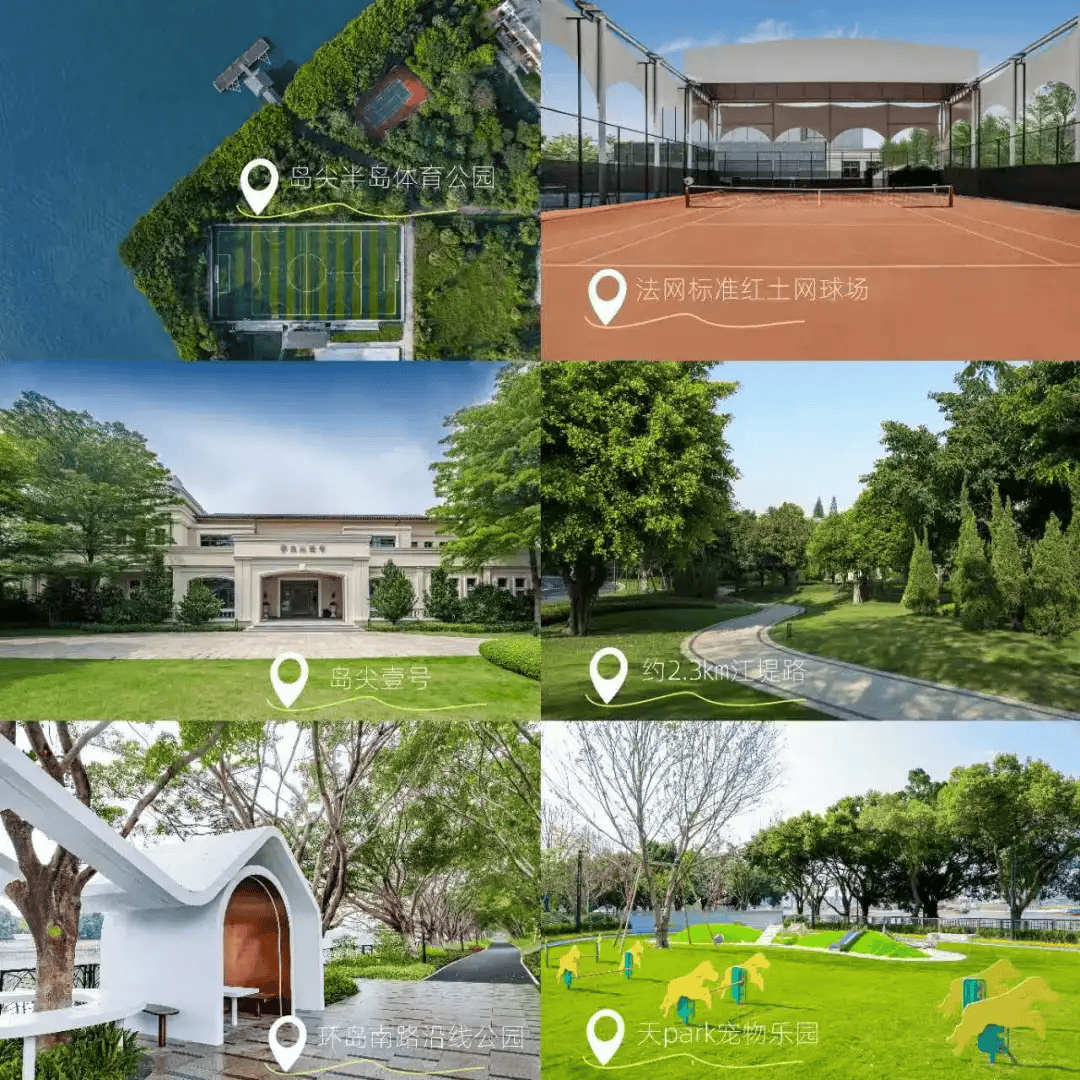据介绍,这里的场地配置均与国际接轨:室内外双泳池采用与水立方同源的奥运级设备,配备独立的干蒸房与湿蒸房;网球场为广州首批法网规格的红土赛场,隔壁是澳网主题配色的硬地网球场。还设室内虚拟高尔夫、三合一功能影音室等文娱设施,及岛尖的标准足球场。