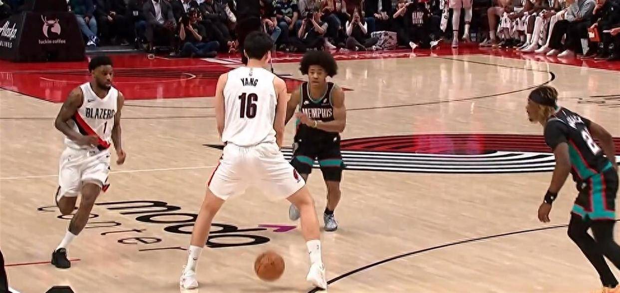7月12日,杨瀚森迎来NBA夏季联赛首秀。 他首发出战24分钟,7投3中得到10分4篮板5助攻3盖帽1抢断,正负值高达 19。 比赛开场第一次进攻,他就在高位策应妙传队友西索科完成暴扣。 第二节他持球突破上篮得分,随后又命中三分球。 全场球迷多次用掌声肯定他的表现,开拓者夏季联赛主帅罗尼-布雷尔评价道:“他学东西非常快,成熟得不像个新秀。 ”